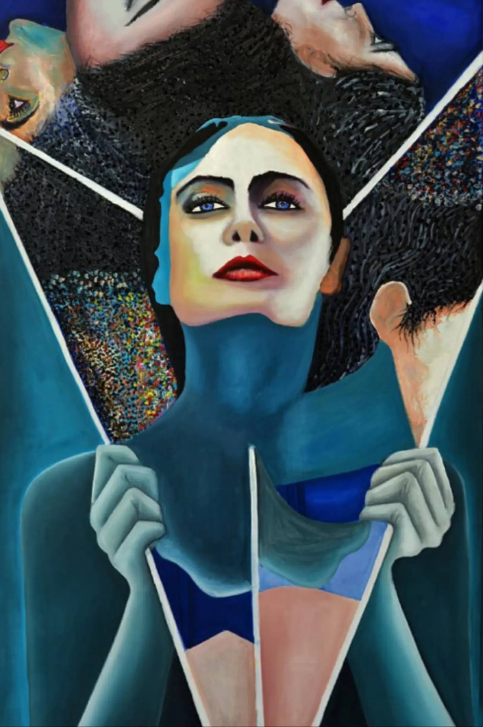 Bu eser, insanın kendi benliğiyle kurduğu karmaşık ilişkiyi konu alır. Yüzün parçalanışı, bireyin toplum içinde taktığı maskeleri ve bu maskelerin ardında saklanan gerçek kimliği simgeler. Eller, sanki görünmeyen bir yüzeyi aralayarak içsel benliği ortaya çıkarmaya çalışır. Renk geçişleri, ruh hâllerinin değişkenliğini ve insanın kendi içindeki çatışmalarını yansıtır. İzleyiciye, "Ben gerçekten kimim?" sorusunu sordururken aynı zamanda bireyin kırılganlığını, gücünü ve yeniden doğuş ihtimalini hatırlatır.