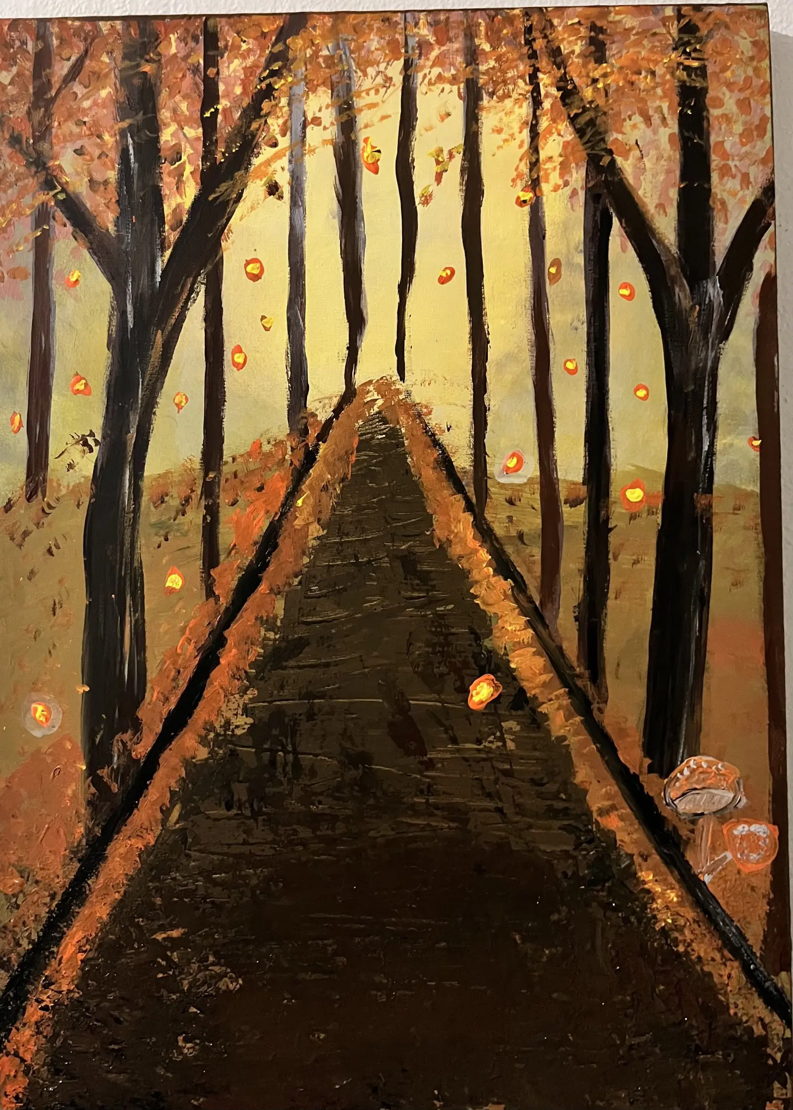 Tablo, izleyiciyi hem geçmişin hatıralarına hem de geleceğin hayallerine doğru bir yolculuğa davet ediyor. Her fırça darbesi, izleyiciyi yolda yürütüp aydınlığa doğru sürüklerken, sonbaharın melankolik ve huzurlu atmosferini yansıtıyor ve derin bir düşünce ile duygusal bağ oluşturuyor.