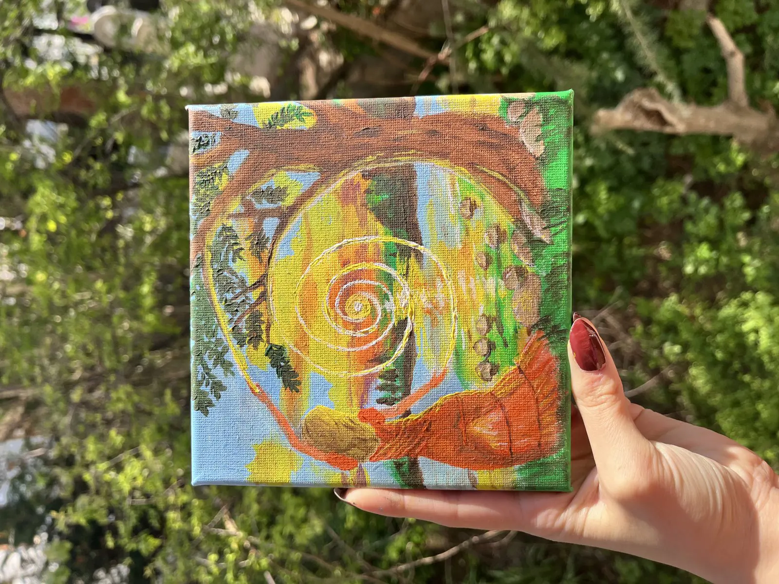 Güneşin ve ruhun mükemmel bir uyumla birleştiği anı betimleyen meditasyon temalı bir eser. Spiral, içsel uyanışı simgelerken, ışığa bakan figür izleyiciyi görünmeyen dünyanın ötesine davet eder.