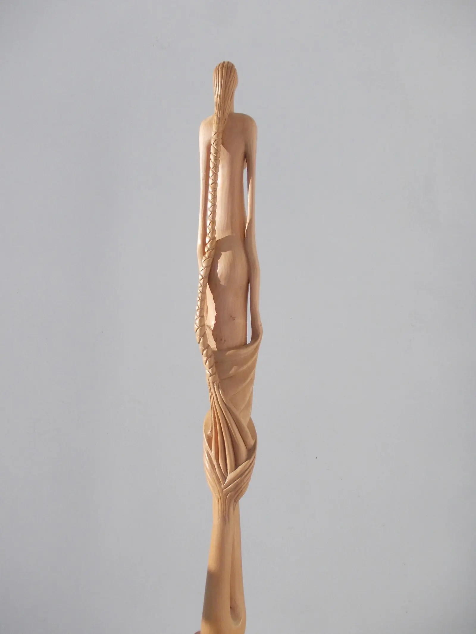 Mağrur,özgür ve kendine güvenen,gökyüzüne doğru uzanan ince ve zarif tek parça ahşaptan yontularak oluşturulmuş,erotizmden uzak saygı uyandıran ve dourganlığı çağrıştıran bir çalışma..