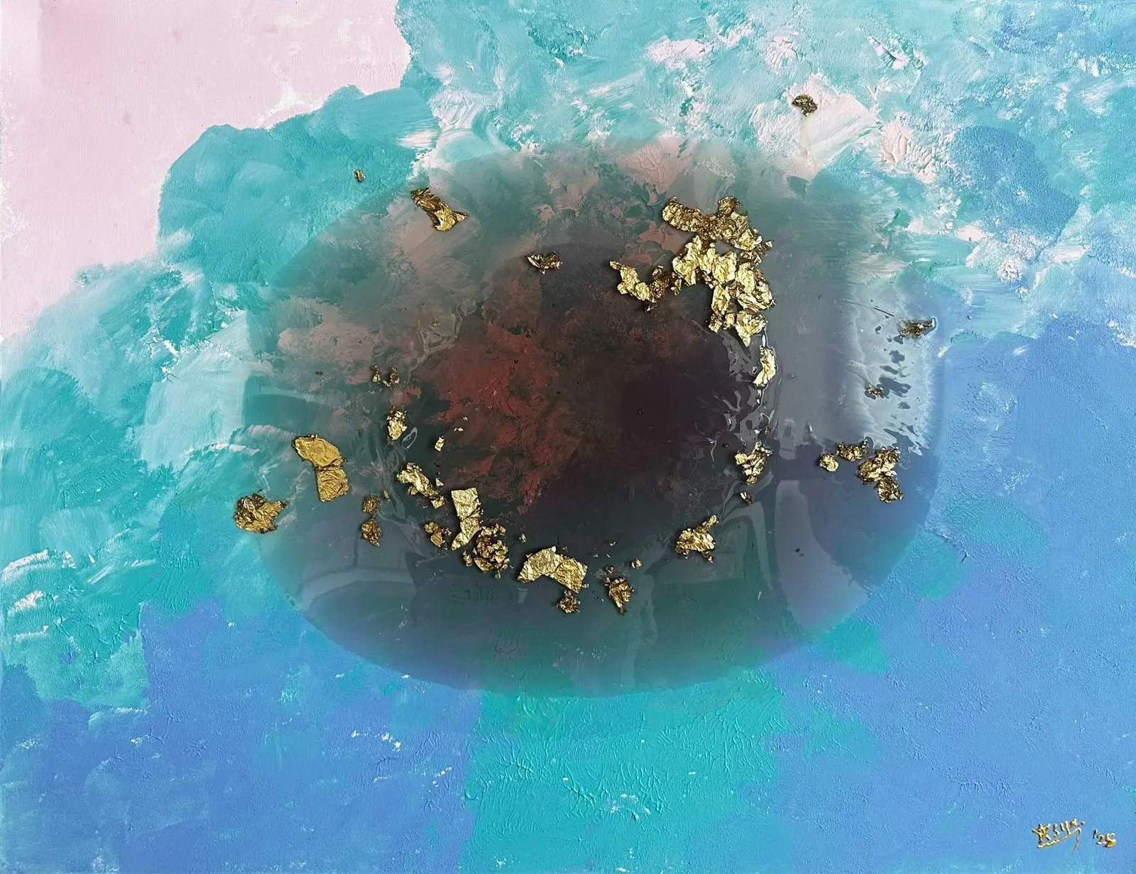 Açıklama: Akrilik boya, epoksi, pigment, altın varak ile oluşturulmuş soyut kompozisyon