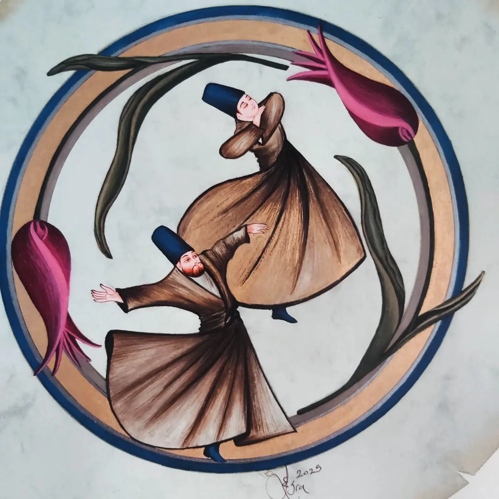Kâinattaki her şey, varlığını aşkla sürdürür ve aşkla bir dönüş halindedir. Eserde yer alan semazenler ile laleler de bu "meşk" hâlini; aşkın ritmini ve devimini sembolize eder.