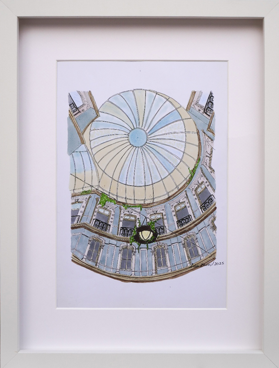 Eser iç ölçüleri 13,3 x 18 cm ölçülerindedir. Dış ölçüler (çerçeve dahil) 21,4 x 26,4 cm'dir. Marker tekniği ile yapılmıştır. Avrupa Yakası dizisinden tanıdığımız Sütçüoğlu Rezidansı yapının karşısında Nişantaşı'nda güneşli bir günde çizilmiştir. :)