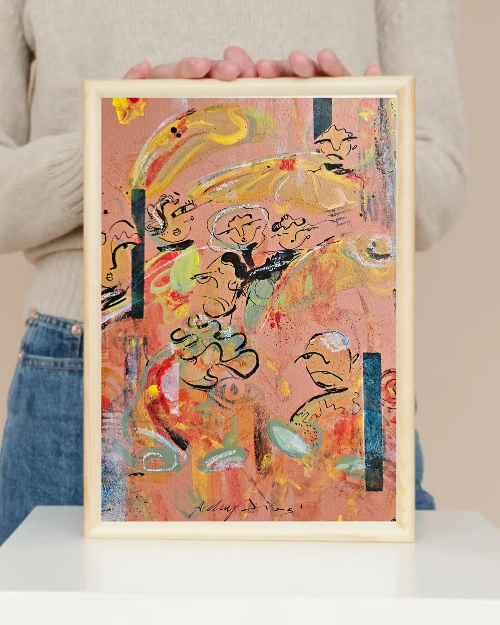 Renklerin hafızayla iç içe aktığı bir geçiş mevsimini anlatır. Soyut dokular arasına gizlenen figürler, dökülen yapraklar gibi anlık, kırılgan ve zamansızdır. Eser, izleyiciyi mevsimin sessiz içe dönüşüne davet eder.
