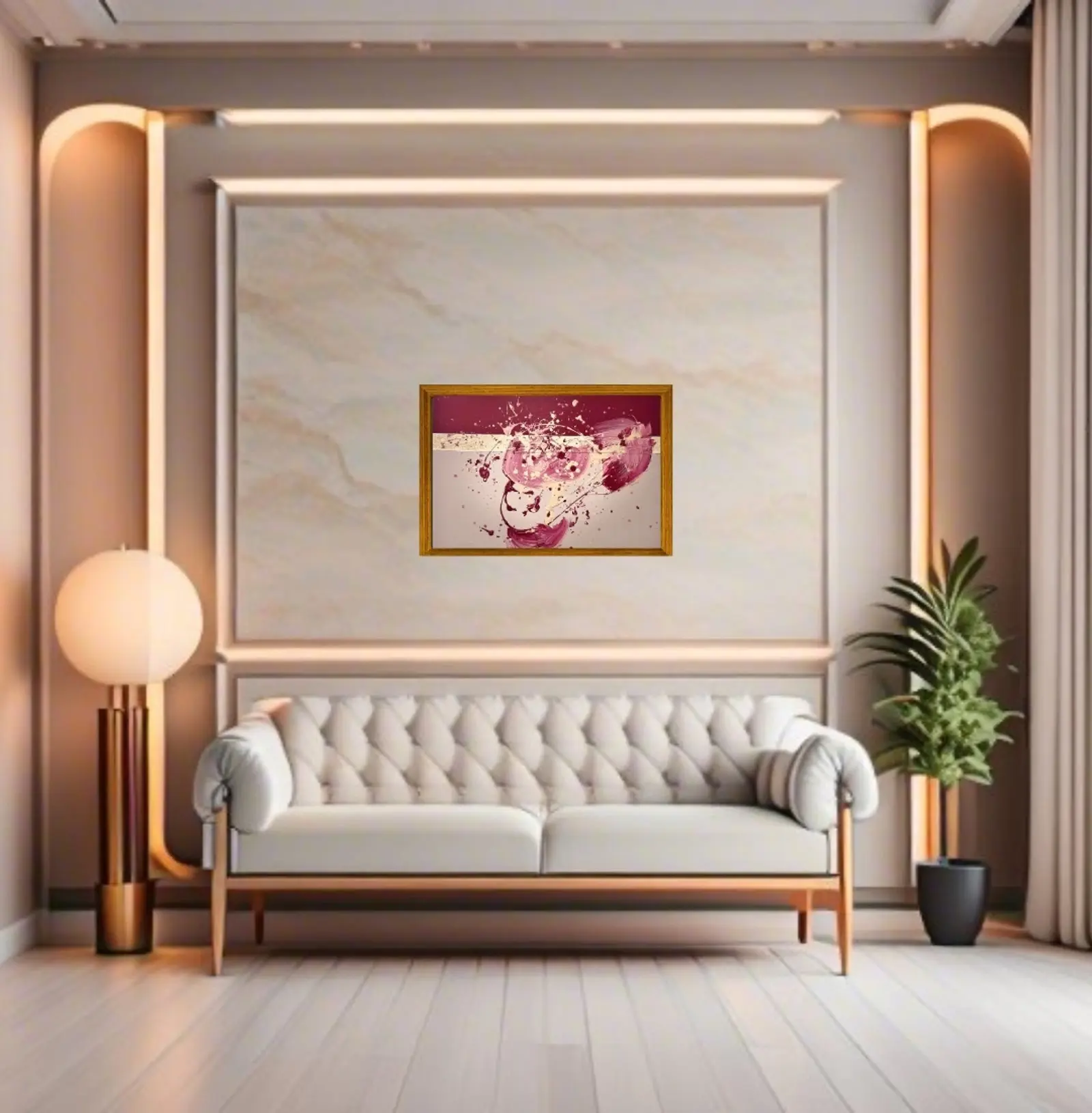 Pouring tekniğiyle birleştirilmiş akrilik boya kullanılmıştır.