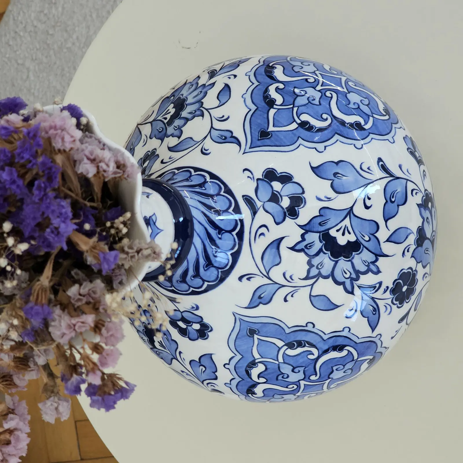 16.yy İznik çinilerinde Babanakkaş üslûbunu yansıtan, klasik motiflerle tasarlanmış serbest çalışma bir vazo.