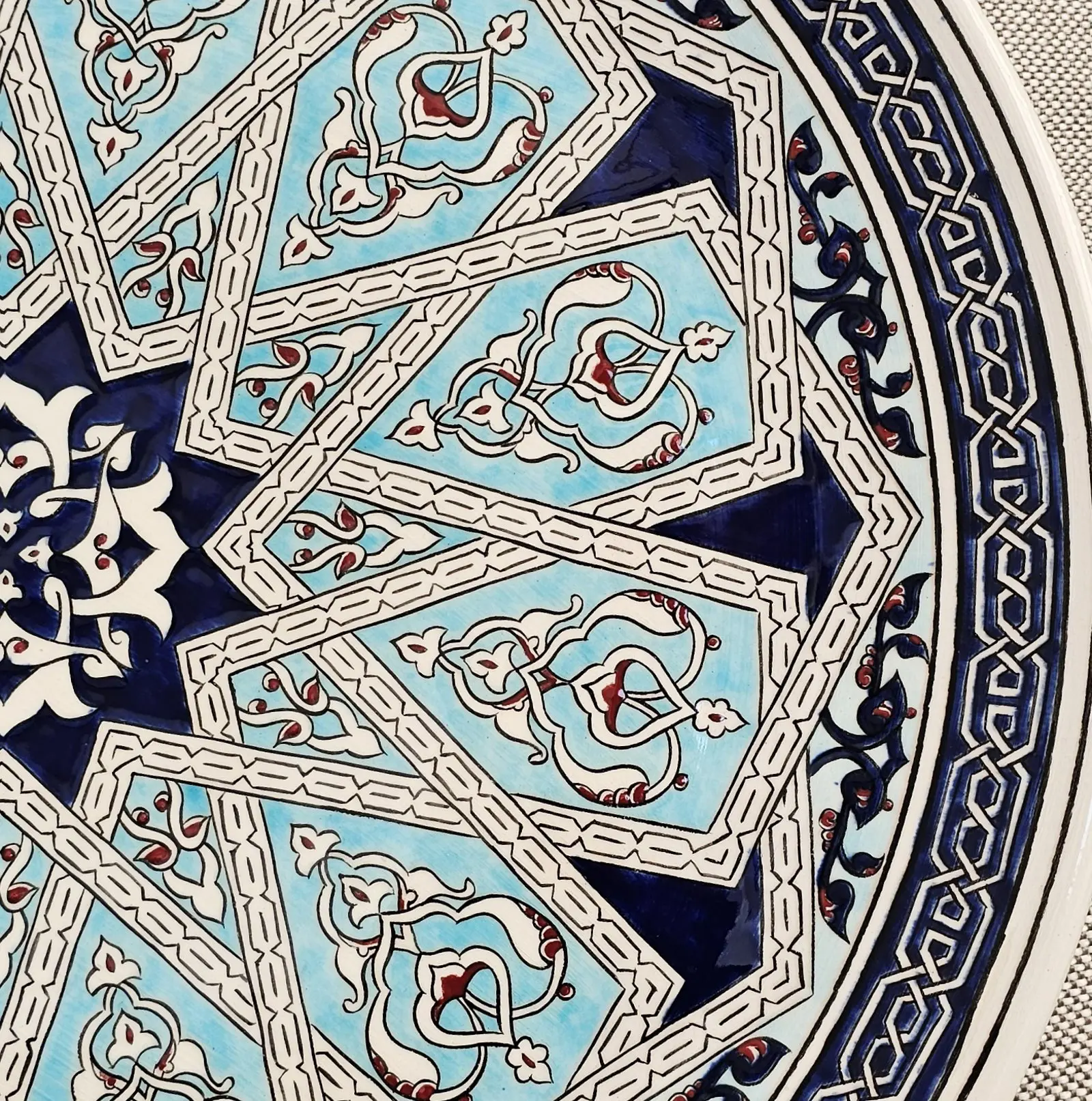 Malzeme: Çini altyapı üzerine çini boyalarıyla sır altı tekniği kullanılarak yapılmıştır.