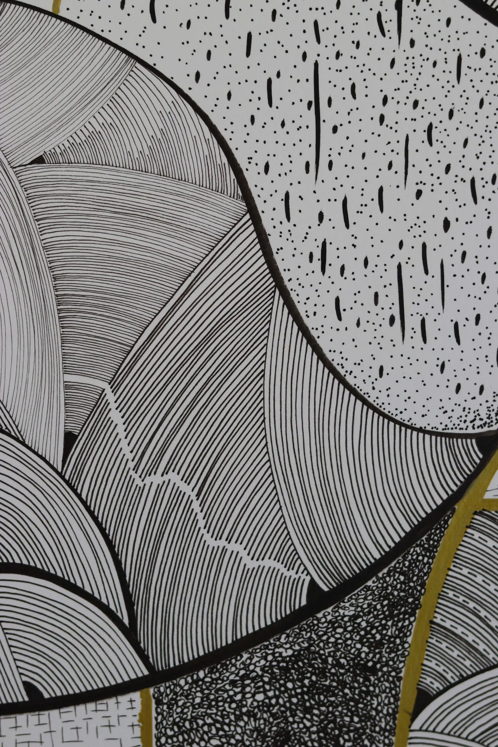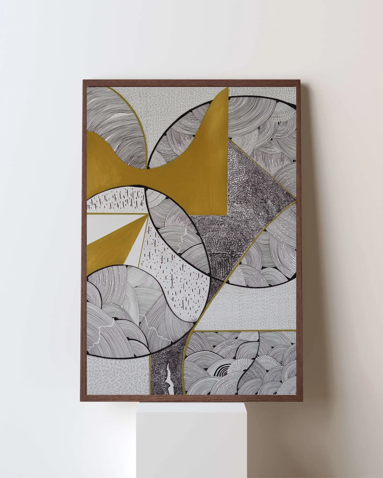 Pigment mürekkep kalemler, yağlı kalemler ve akrilik kullanılarak üretilen eser; akıcı hareket ile meditatif detayları bir araya getirerek suyu, durgunluğu ve kıyı mekânlarının duygusal çekimini soyut bir dille ifade eder. İzleyiciyi, denizin kıyısından ilham alan denge, karşıtlık ve hareketle dolu duyusal bir yolculuğa davet eder.