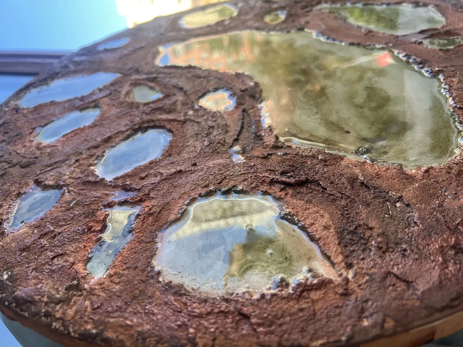 Kahve tonlu yüzeyde zaman kabuk kabuk çökelmişti.