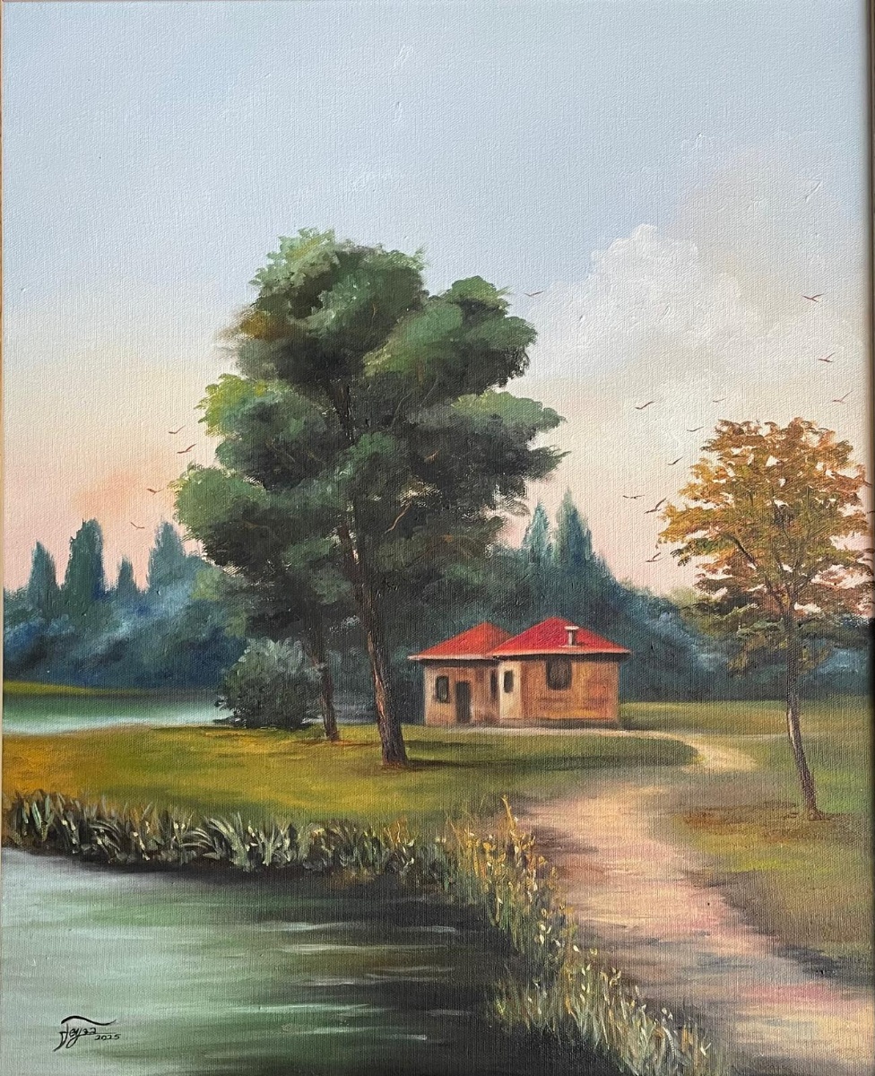 Şehrin gürültüsünden ve modern hayatın hızından tamamen uzaklaştığınızı hayal edin. Bu eser, doğanın sessizliğini ve bir yuva sıcaklığını tek bir karede buluşturuyor. Pencerelerden süzülen yumuşak ışık ve kapı eşiğinde dinlenen figür, izleyiciyi derin bir tefekküre ve iç huzura davet ediyor. Bu çalışma, sadece bir manzara değil; bir 'eve dönüş' hikayesidir.