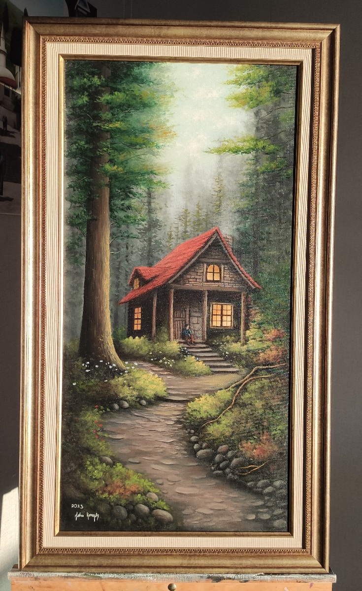 Resim astarlanmış yüksek kaliteli %100 pamuk tuval üzerine işlenmiştir.