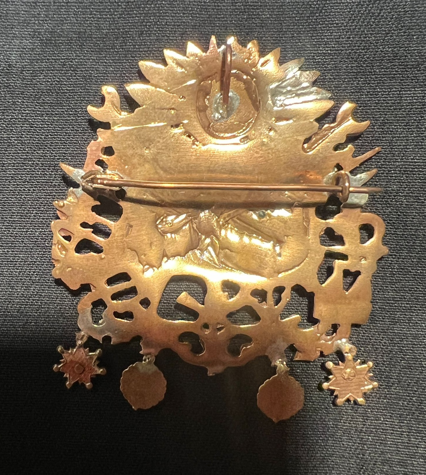 Açıklama: Elmas ve renkli taşlı roze an ayar Osmanlı devleti aliye arma broş & kolye ucu