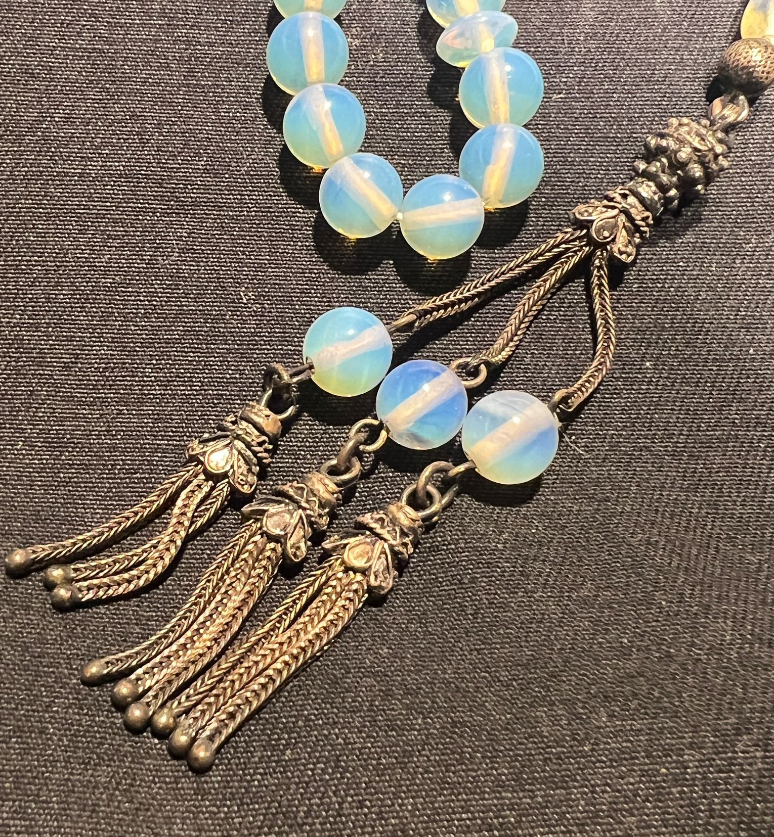 Açıklama: Opalin ay taşı gümüş kombineli özel yapım 33 lük tespih