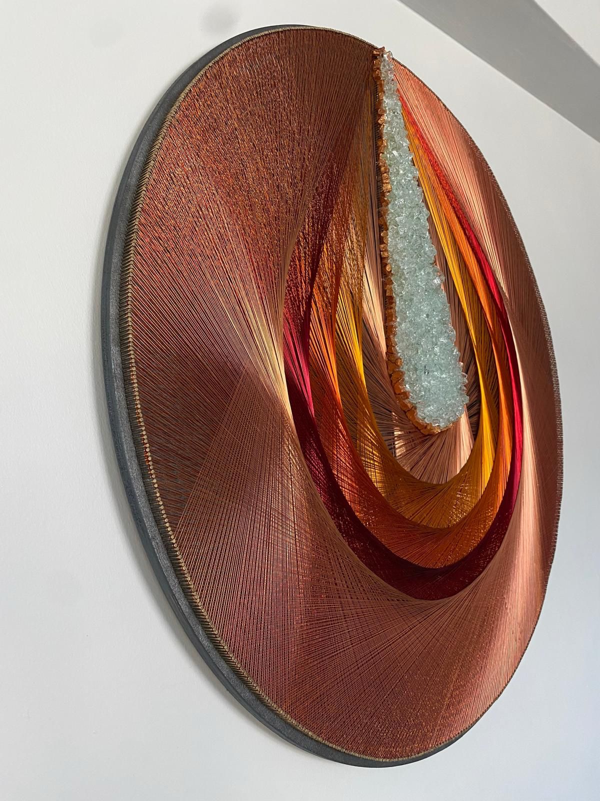 Açıklama: Çivilerle bakır tellerin muazzam ahengi ile meydana gelen 80 cm çapında duvar ta... Devamını Oku