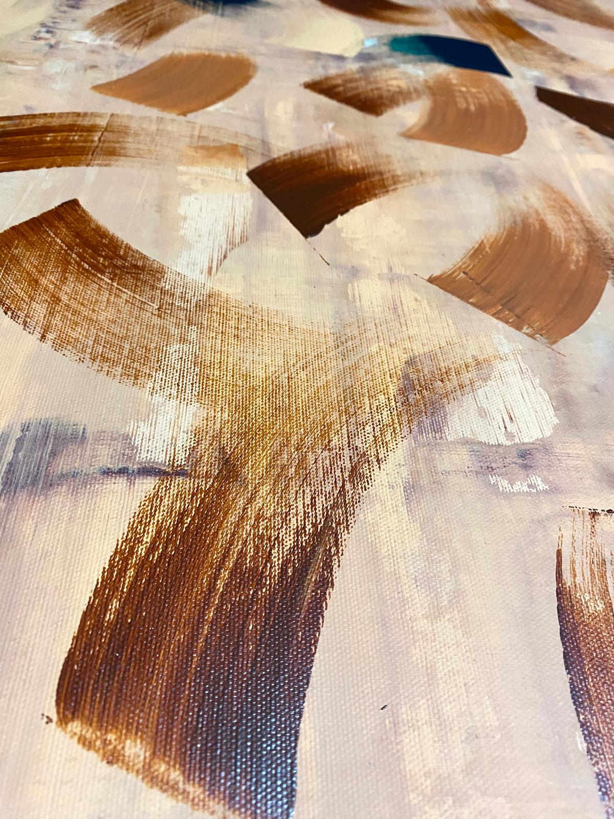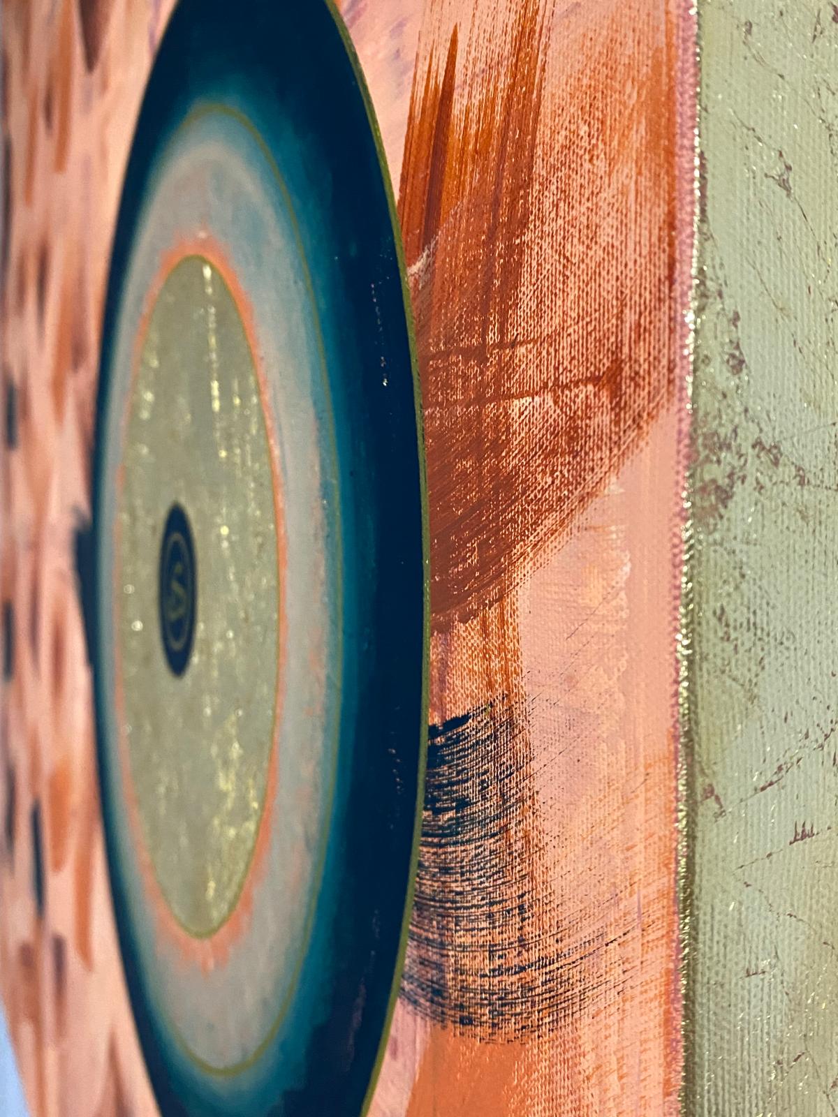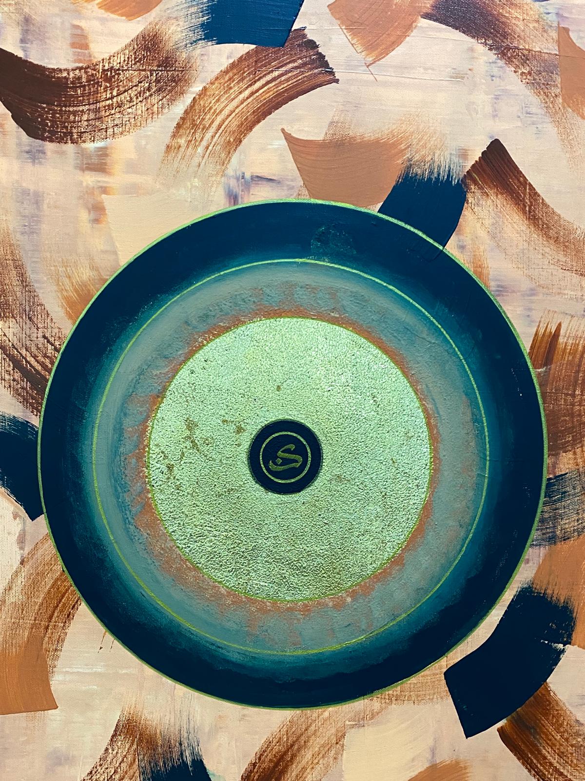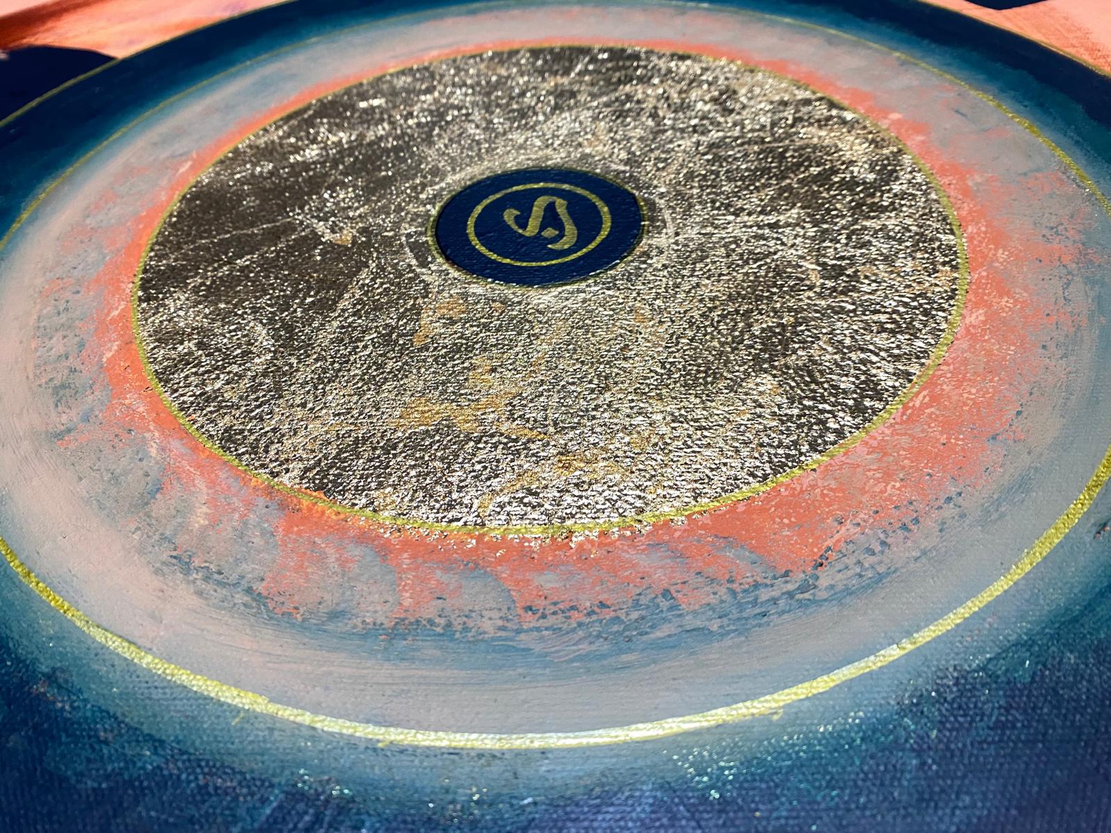 Bu eser varlığın özündeki o ilk sese Kun(ol) emrine bir saygı niteliğindedir. Arka plandaki devinimli fırça izleri evrenin bitmek bilmeyen döngüsünü ve insanın bu kaos içindeki arayışını temsil ederken; merkezdeki mediatif altın daire ruhun dinginliğini ve ilahi olanın sarsılmaz birliğini simgeler.Kaosun içindeki düzen maddeden manaya dönüşü anlatır.