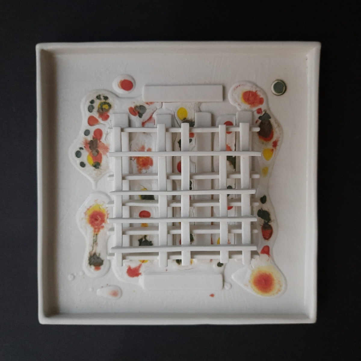 Porselen, plaka tekniği,1250 c de pişirimi yapılmıştır, alt yüzey çimento ile sağlamlaştırılmış gaz beton.