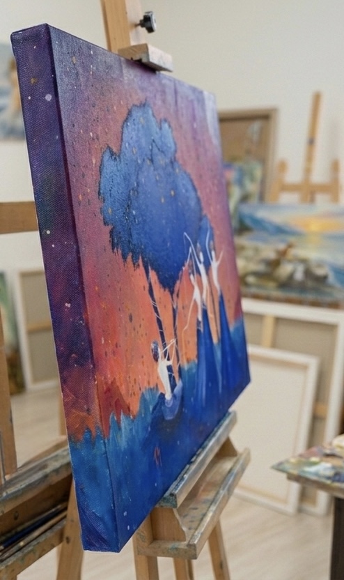 Resim, karanlığın içinden doğan bir umudu ve kadın ruhunun engellenemez coşkusunu simgelemektedir. Birlikte el ele, ritmin ve hakikatin peşinde koşan kadınlarİn zafer dansıdır.