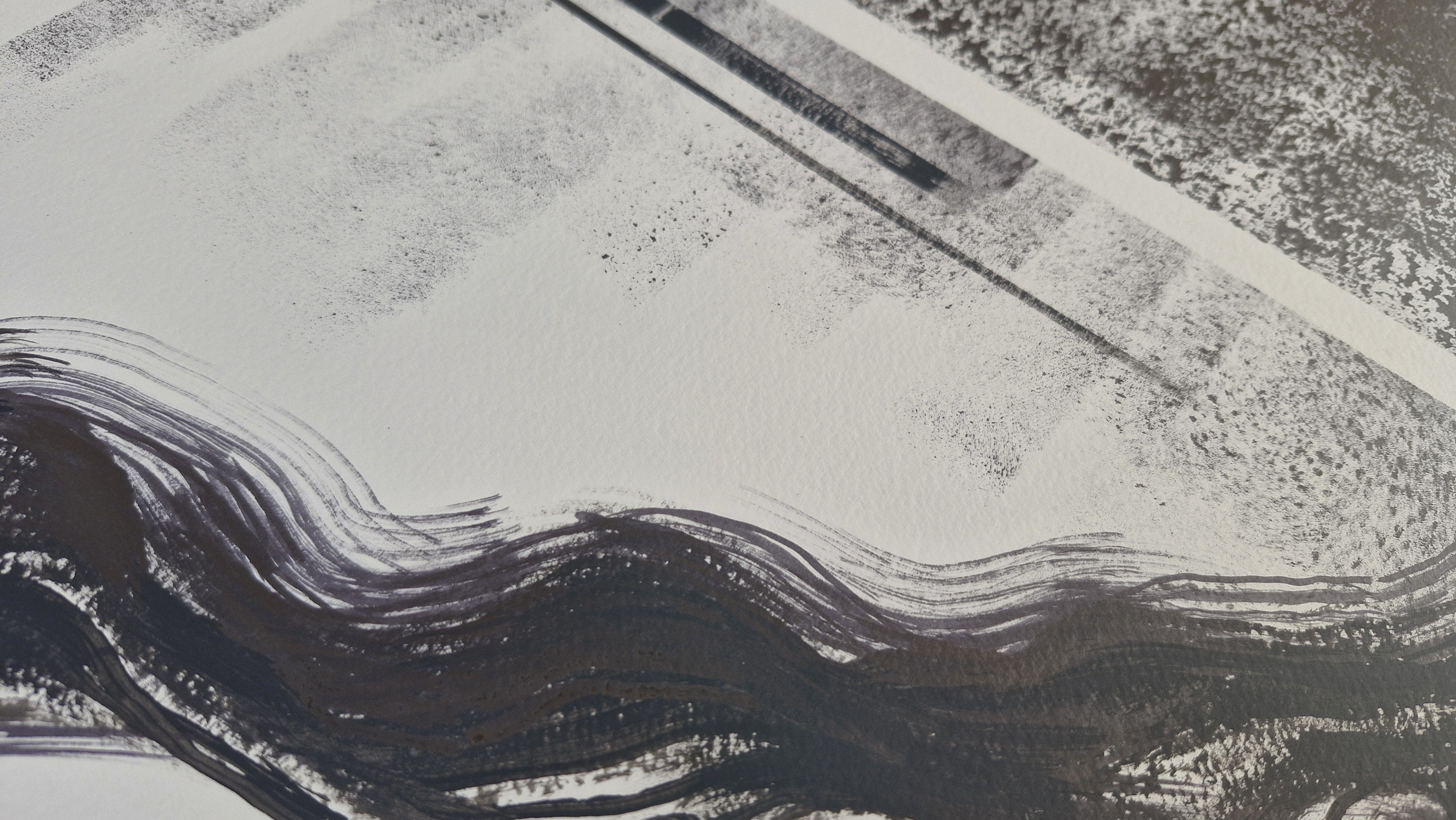 Çalışmamı sulu boya kağıdı üzerine karışık teknikle yaptım. Sulu boya, akrilik boya ve mürekkep malzemelerini kullanarak yaptım.