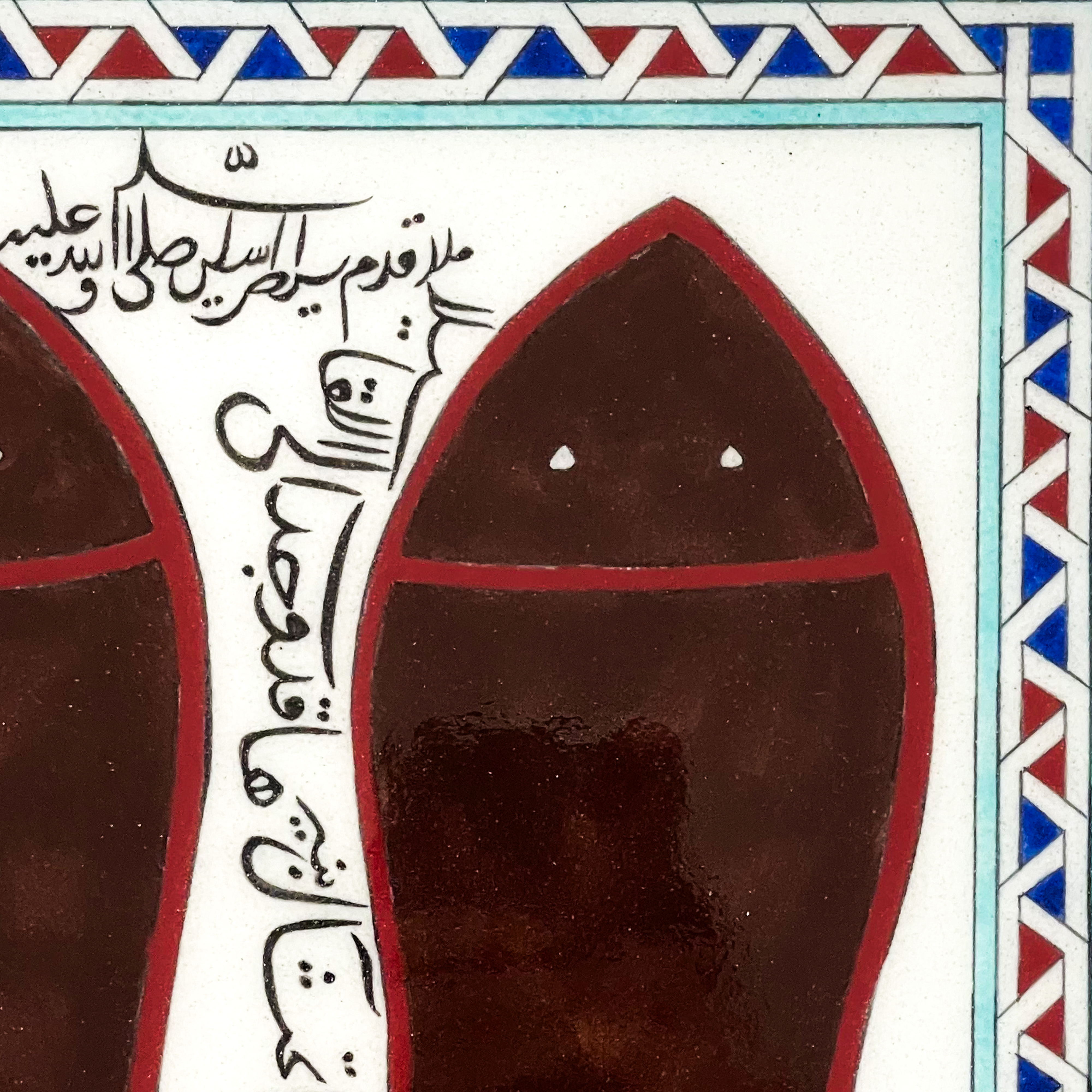 Hz. Muhammed’in giymiş olduğu sandaletler naat ve mevlitlerin yanı sıra sire ve şemail gibi eserlerde Nal-ı Pak, Nal-ı Şerif, Nal-ı Mübarek, Nal-ı Saadet, Nal-ı Resul, Başmak-ı Şerif diye anılmıştır. Nal-ı Şerif ya da Nal-ı Saadet olarak adlandırılan sandalet türü ayakkabıların uğur getirdiğine ve bulunduğu yeri her türlü kötülüklerden koruduğuna inanıldığı için stilize edilmiş, sembolik bir anlam yüklenmiştir. İstanbul Üsküdar Solak Sinan Paşa Cami’nde (1547-48) bulunan Nal-ı Şerif tasvirli çini, mihrabın sağ tarafında yer almaktadır. Bu eser, orijinalinin 2026 yılında yapılmış replikasıdır.