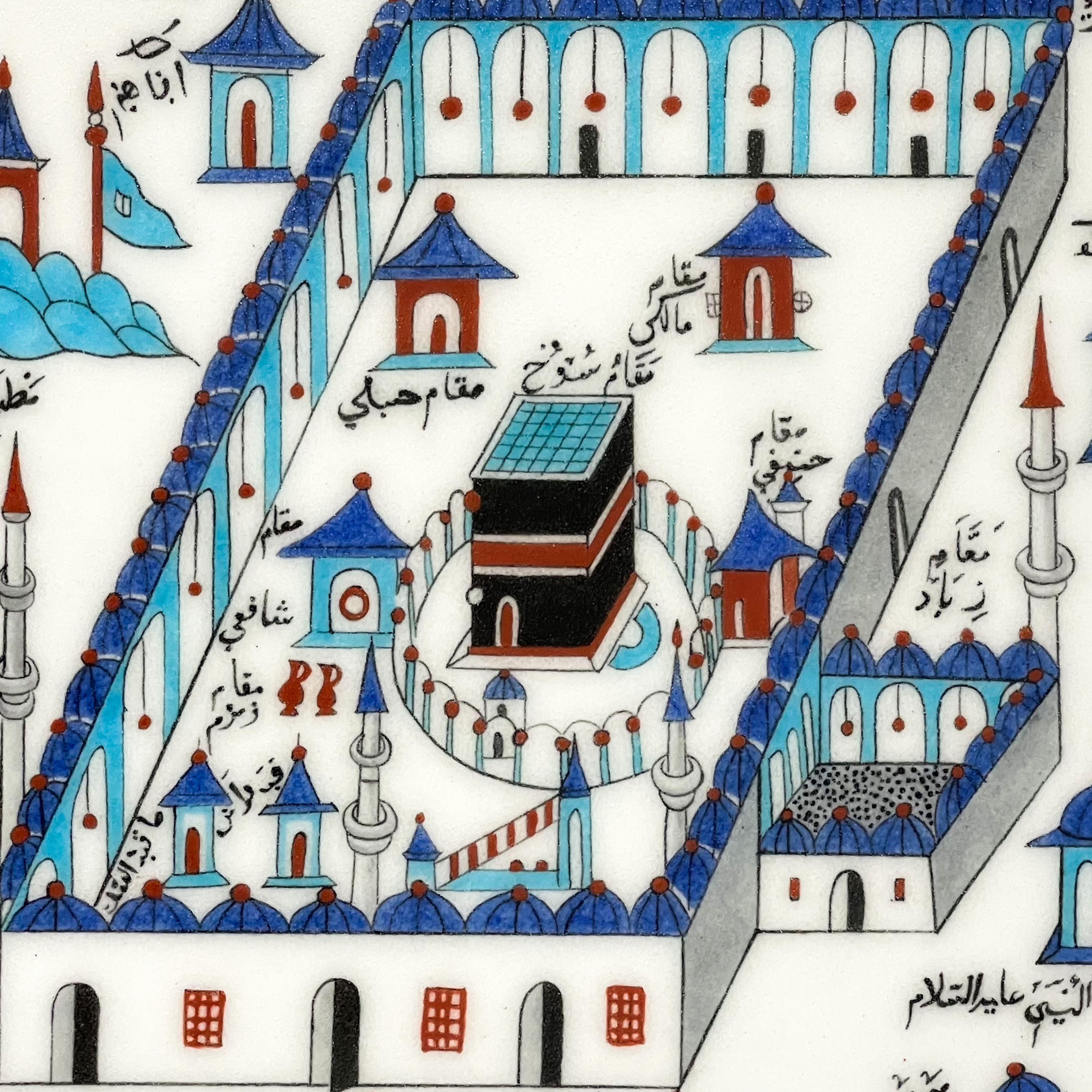 New York Metropolitan Müzesinde bulunan 337 envanter numaralı çini pano, sıraltı boyama tekniğinde işlenmiş olup 1720-30 yıllarına tarihlenmektedir. İnce kenar cetvelli panoda Mescid-i Haram, çevresindeki yapılar ve etrafını çevreleyen tepeler panoramik olarak perspektif anlayışıyla tasvir edilmiştir. Merkezde Kâbe, mezhep binaları, minber betimlenmiştir. Sol alt köşede çerçeve içinde eserin sanatçısı “Binayi resm-i Osman ibn-i Mehmed” olarak görülmektedir. İstanbul Tekfur Sarayı çini atölyelerinde üretilmiştir. Eser, bu çininin aslından replika olarak çalışılmıştır.